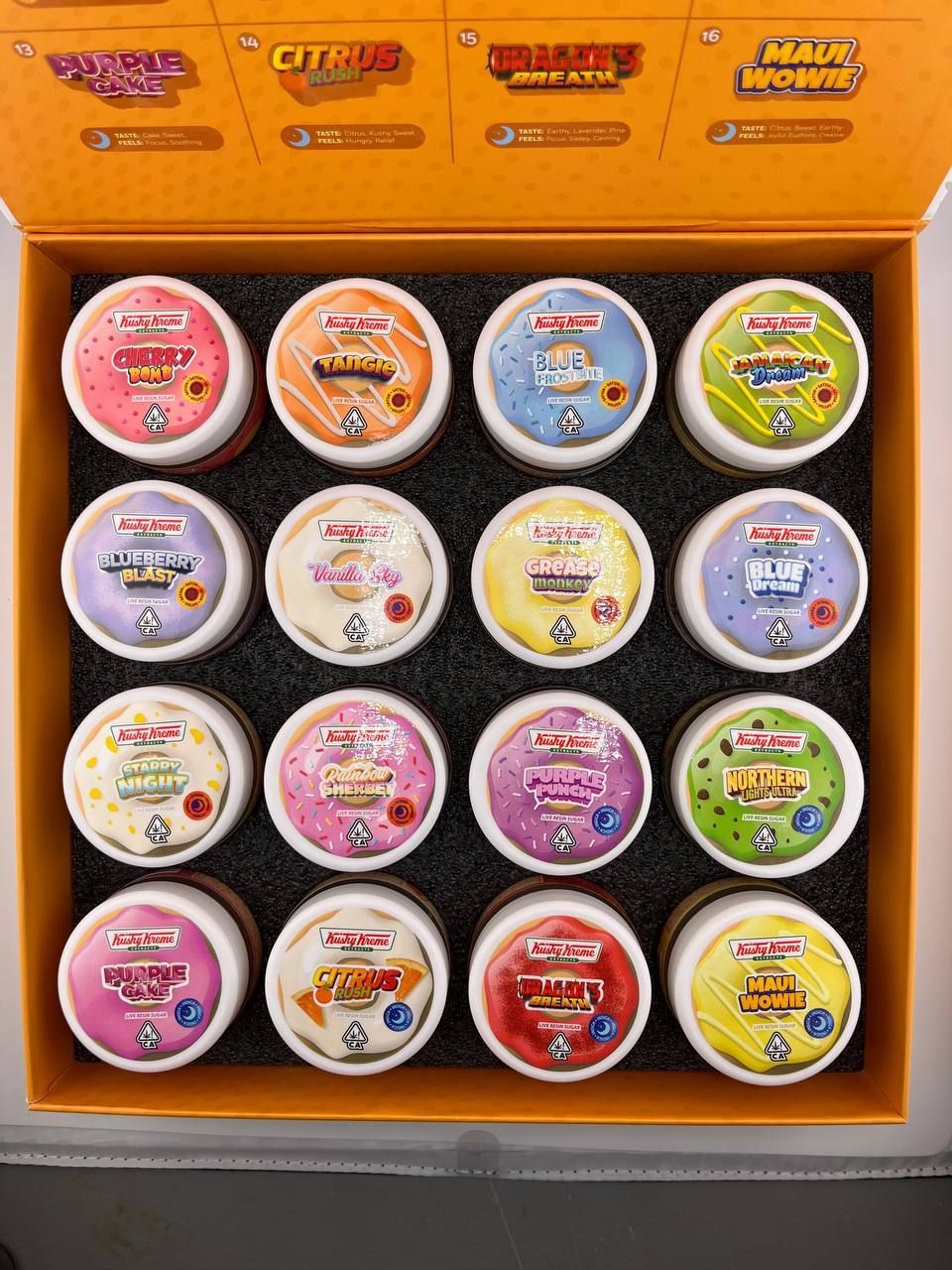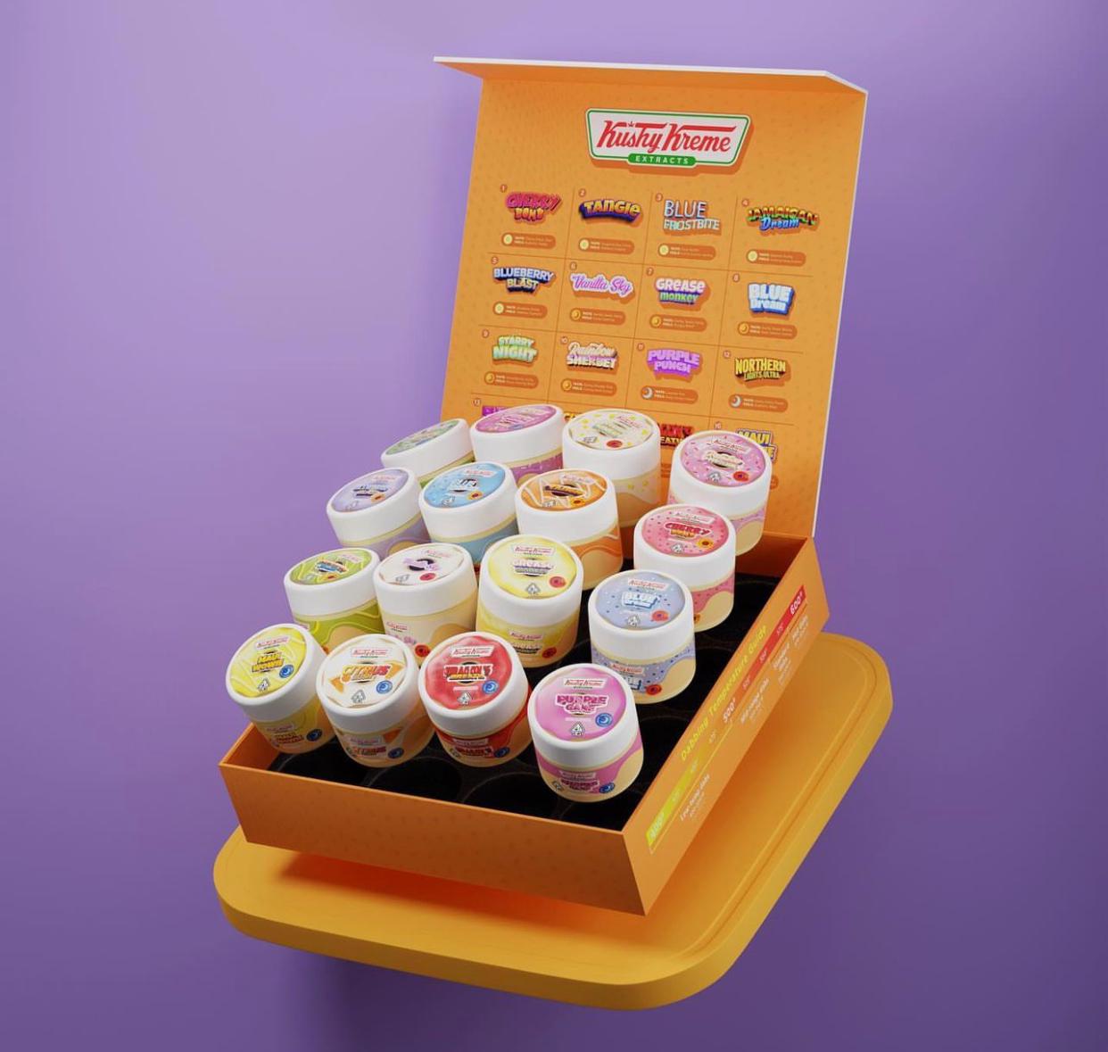 Sugar Variety Pack from Kushy Kreme with Live Resin. The 28 g glass jars of Concentrate Extracts Sugar contain the concentrate of Kushy Kreme Extracts. Sugar is a waxy cannabis concentrate that can be smoked or vaped with a dab tool. You can get 16 jars of live resin products in a variety pack, each containing 16 different premium marijuana strains’ extracts. This full-spectrum live resin sugar assortment from